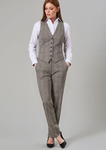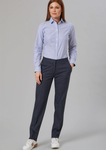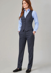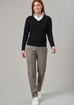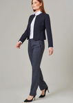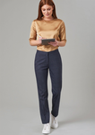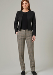 Slim leg, front hook fastening, 2 side pockets, mock hip pockets, feature jogger waist.