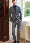 Slim fit, 2 button front, centre vent, 2 flap pockets, welt chest pocket, 2 internal pockets, notch lapel.